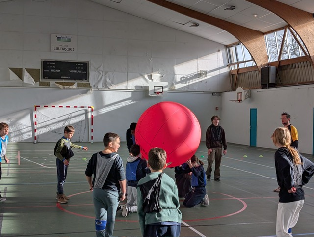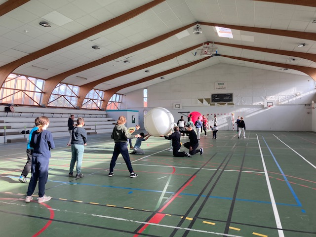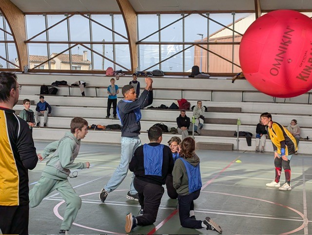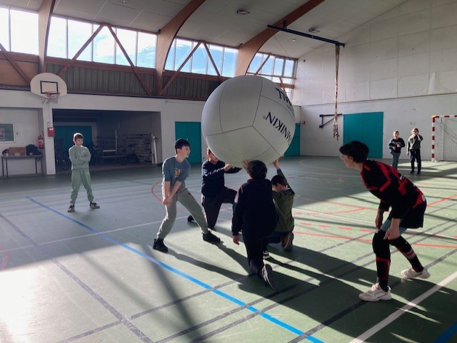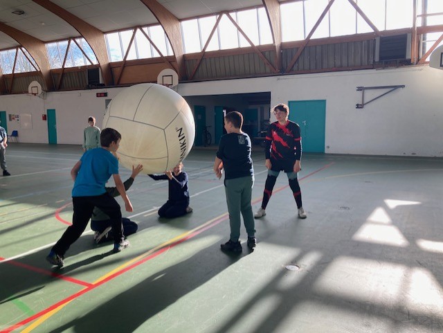 Les élèves ont pu découvrir ce sport atypique se jouant avec un énorme ballon -