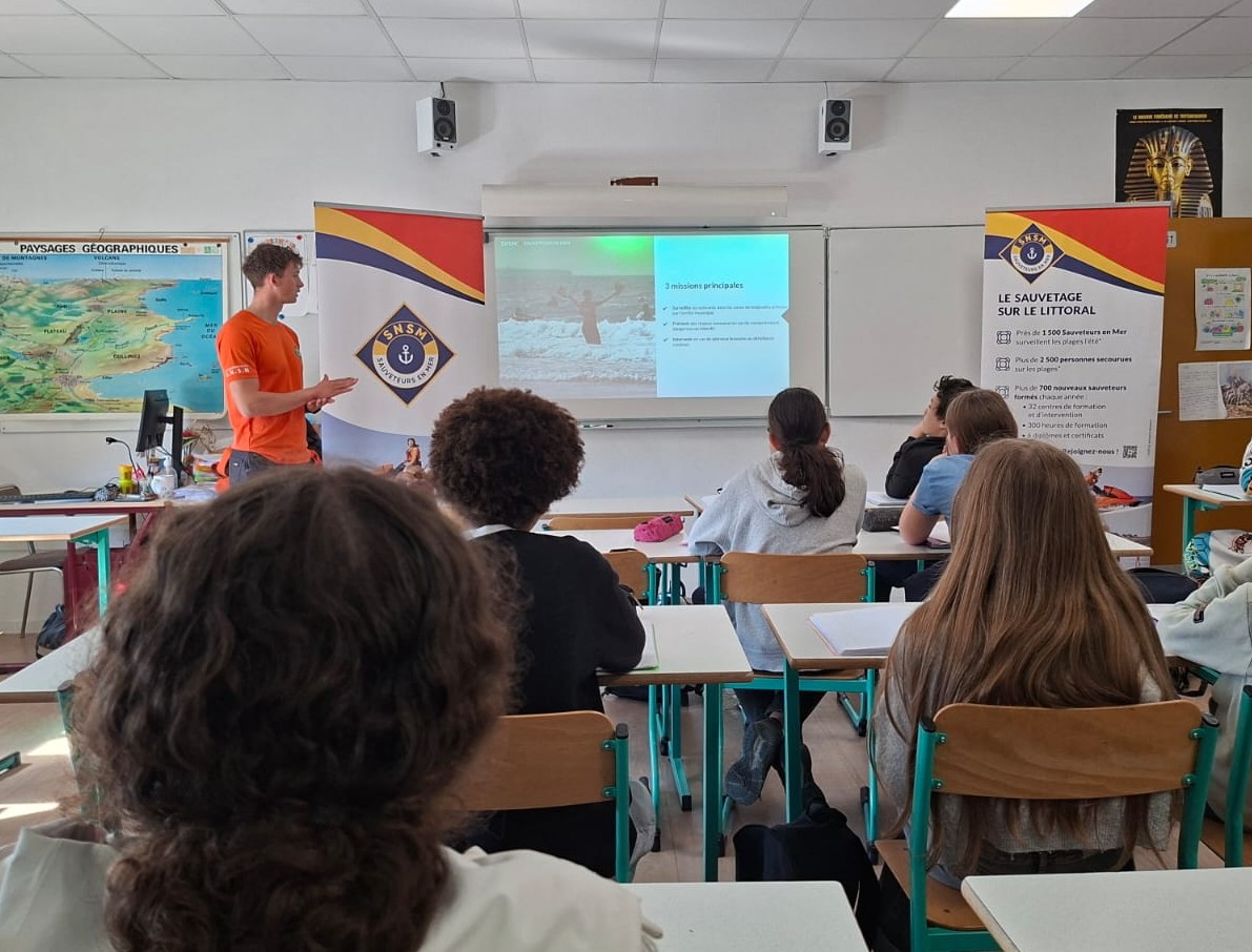 Dans le cadre du programme d'EMC, tous les élèves de 4ème et quelques élèves de 3ème ont échangé avec un jeune bénévole, Rohan Wood. Celui-ci est sauveteur en mer, pompier volontaire et formateur secourisme. Ainsi, toutes les classes travaillent actuellement sur les métiers qui assurent la sécurité et la défense des Français. Les élèves ont assisté à une présentation de la SNSM et, ensuite, ils ont pu poser toutes leurs questions.